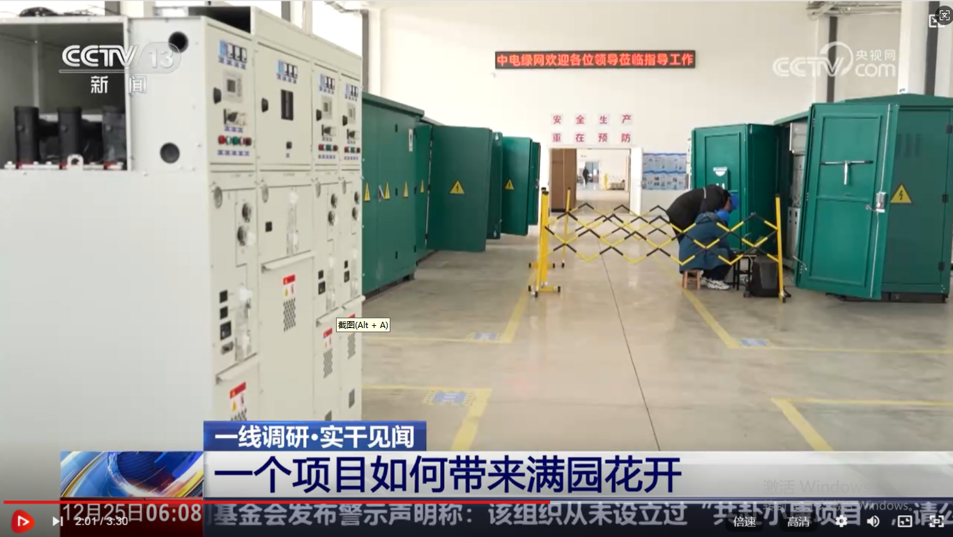 ????? 中央電視臺于2024年12月23日到訪青島中電綠網新能源有限公司,對公司新能源相關產品及生產情況進行了拍攝采訪,中電綠網立志為國家新能源發展貢獻自己的力量。
