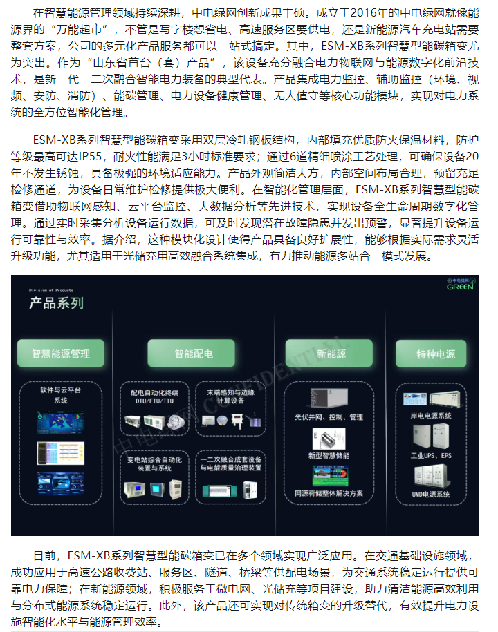 2025年6月5日,青島高新公眾號(hào)發(fā)布一篇“中電綠網(wǎng):科技創(chuàng)新賦能“雙碳”戰(zhàn)略 讓能源管理更“聰明””報(bào)道,具體內(nèi)容如下: