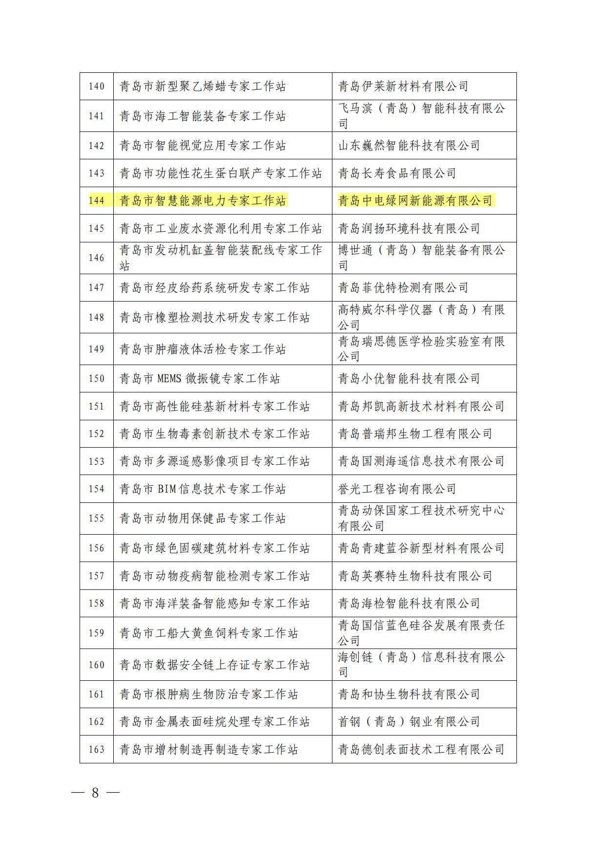 青島中電綠網(wǎng)新能源有公司榮獲“青島市專家工作站”