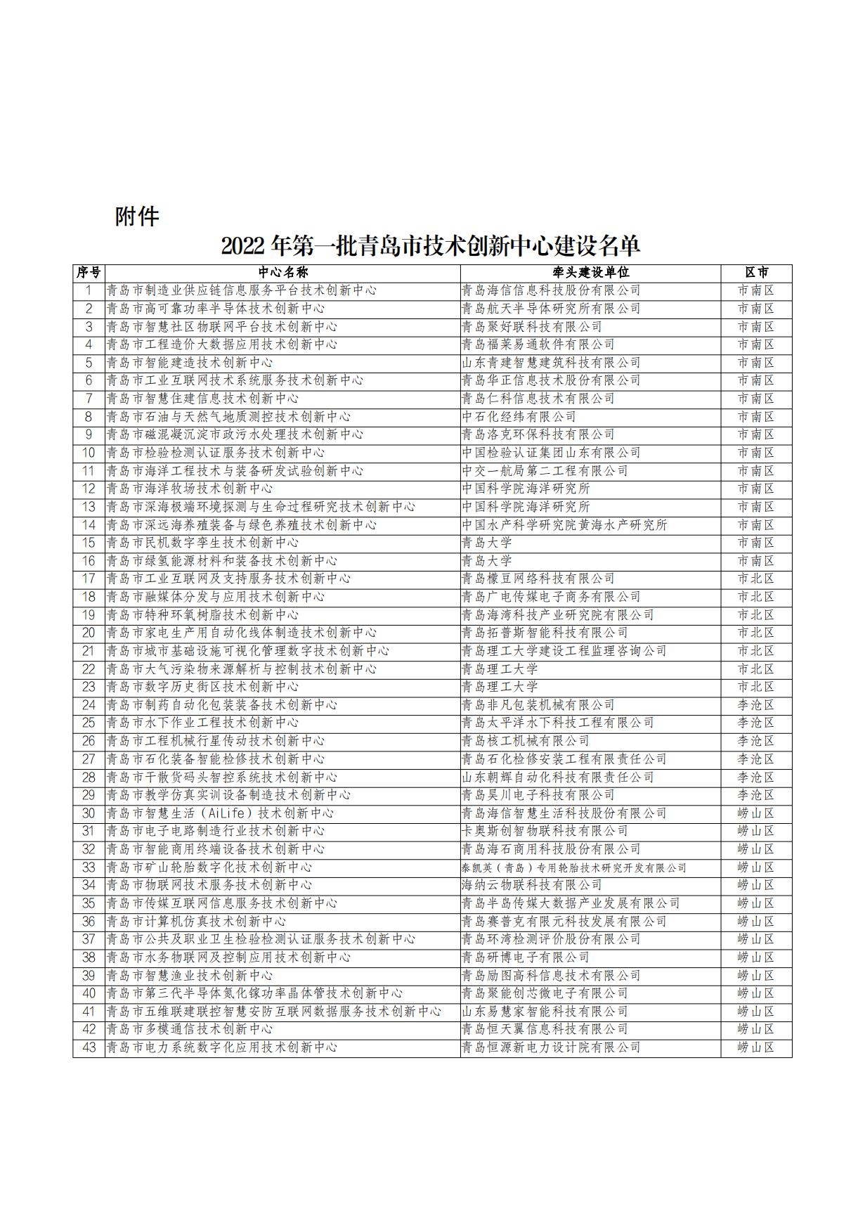 公司獲批為青島市技術(shù)創(chuàng)新中心已公示: