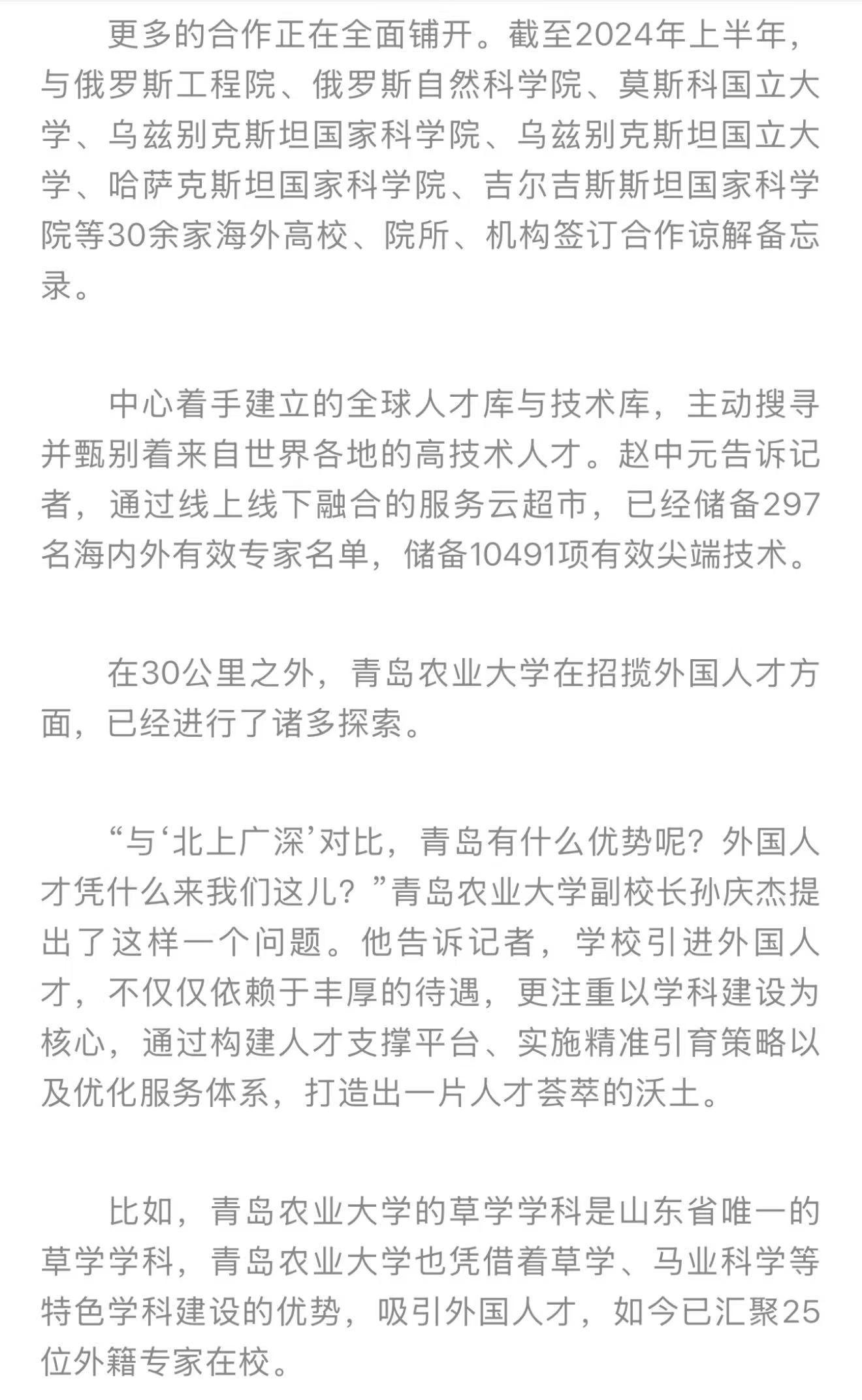 前不久,由國家人力資源和社會保障部國外人才研究中心指導、青島市科學技術局主辦的“2024走進魅力青島”調研活動在青島舉行。本報記者實地走訪,看外國專家如何融入這座城市,愛上這座城市,投入這座城市火熱的生產、生活中。