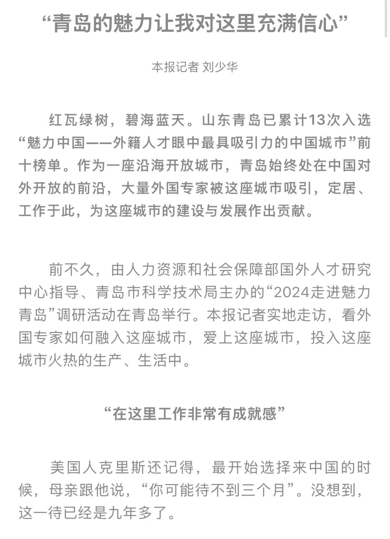 人民日報海外版聚焦多位外國專家眼中的青島,中電綠網也做了介紹